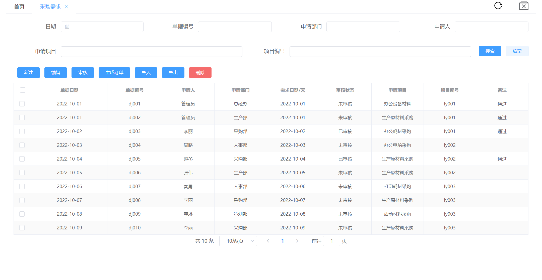 自定义最低库存值,及时采购补充,避免影响企业经营; 根据采购需求自动生成采购单,领导在线审批提升效率。