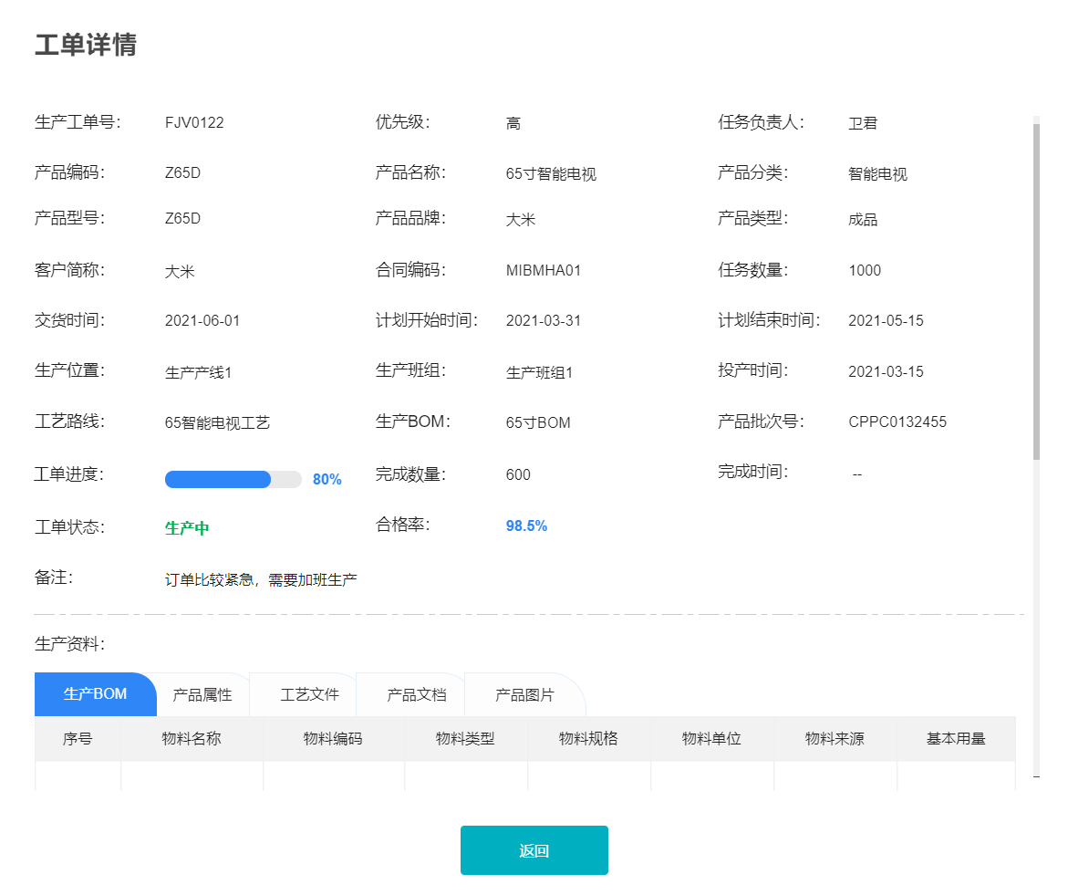 生产计划实际执行进度自动汇总更新,全流程透明; 快速掌握各环节生产进度情况,确保订单如期交付。