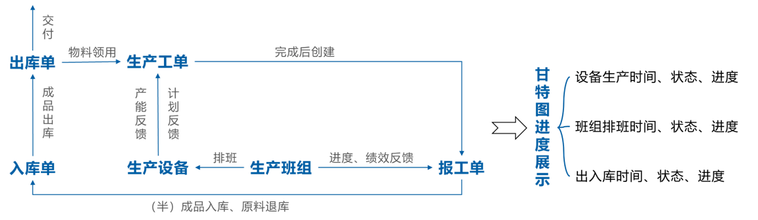 围绕生产关键指标,帮助管理者快速掌握生产状态; 可视化甘特图展现方式,高效支撑管理决策的制定。