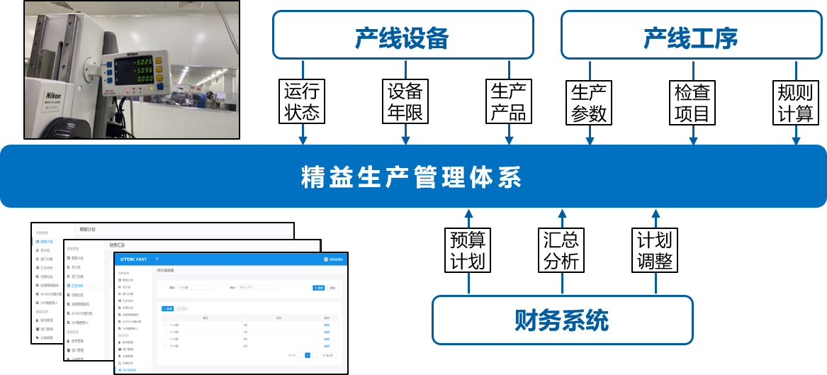 结合物联网传感设备打造智能化产线,获取产线关键数据,同时与财务系统对接,自动完成预算计划对比分析,强化精益生产管理能力